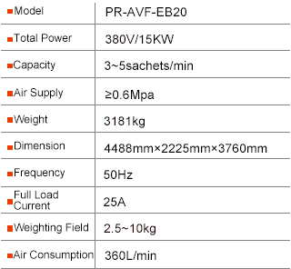 The machine can be used for fine granular material, powdered or small pieces. For example: fine grain products or dry yeast. The capacity of the machine is depending on the product physical property, the format and the dosage of the sachets.